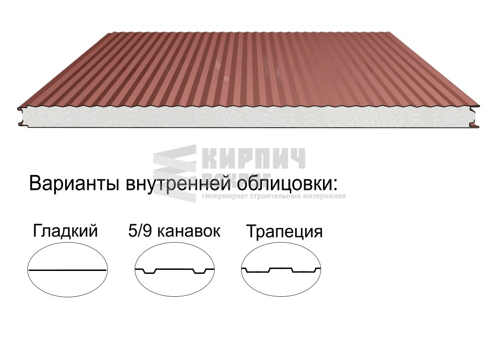 Раздел ТрёхслойныеСтроительный материал, имеющий трёхслойную структуру, состоящую из двух листов металла и слоя утеплителя между ними.