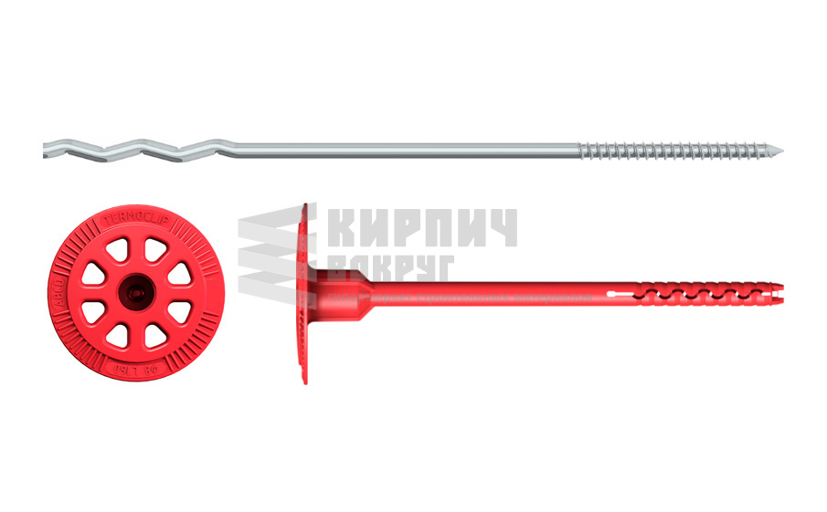 Металлическая гибкая связь TERMOCLIP МГС 3 MS из распорно-связующего элемента с винтовой накаткой и полиамидной шнекообразной анкерной гильзы АГ МS.